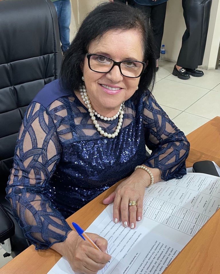 Neuza do Salgado é professora aposentada, esposa, mãe, avó e bisavó, e uma referência histórica da educação no município. Conhecida como Diretora Neuza do Salgado, dedicou mais de 40 anos à vida educacional, impactando gerações de alunos, famílias e profissionais da área.